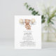 Bear Balloons Script Baby Shower-inbjudan. Trendig och ett könsmognadskort för barn med en baby-björn med ballonger. Perfekt för pojkar och flickor, babyduschar.