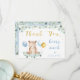 Bear Greenery Guld Blue Baby Shower Tack Kort