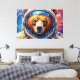 This striking artwork by Otis Porritt presents a bear in an astronaut helmet, its gaze direct and captivating. The animal's fur is rendered with a rich tapestry of textured strokes in warm oranges, yellows, and browns, creating a vibrant, almost impasto effect. Cool blues and purples define the snout, contrasting with the fiery tones of the fur. The reflective visor of the helmet frames the bear's face, while the background swirls with dynamic strokes of teal and deep blue, evoking a cosmic expanse. The digital medium masterfully captures a painterly aesthetic.