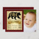 Lumberjack första födelsedagsinbjudan med svart björn och guld ONE på en guld, svart och röd buffel med plats för fotografi. Den här söta första födelsedagsinbjudan är lätt att anpassa genom att helt enkelt lägga till din foto- och evenemangsinformation. Det här är en tryckt design utan glitter, folie osv.