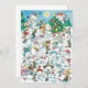 Lönsam illustration av vintagen God jul helgdag med fånig, lycklig, djur, polar med hattar och penguiner med halsdukar, leker i snö med dekorerat Julgranar, inslagna Julklapp och polkagrisar. Det finns stjärnor som lyser på natten himlar när snöflingor faller i skogen. Tecknet lyder "Party". Roligten spelar i snö under vintern.