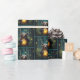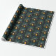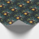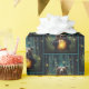 Svart björn som håller ett glas burk fyllt med glödande fiber i mörk skog.