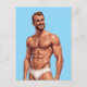 This highly stylized illustration features a single male figure with a confident, bearded smile, executed in the clean, polished aesthetic of vintage advertising art, reminiscent of the mid-20th century. The artistic technique utilizes smooth rendering and luminous, warm lighting to highlight the figure's chiseled physique and robust health. Unlike the typical clean-shaven look of the era, the beard introduces a contemporary touch of ruggedness, blending classic illustration style with modern masculine appeal. The figure's upward gaze and radiant expression convey a sense of pure joy and aspirational vigor. This piece is a celebration of confident, idealized masculinity, rendered with the graphic precision and optimistic flair of a classic poster, making it a powerful and visually striking image for those who appreciate the marriage of retro style and modern features.