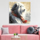 Beardad kollie med strimlad vinter-scarf canvastryck