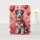 Bearded Collie Valentine Dog Sitting with Hearts Kort