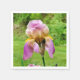 Nära en rosa- och lila-skäggig iris som visar skägret av gult
