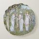 Merlin trollkarlen som tar barnet Arthur in i hans hålla. Dra av Aubrey Beardsley från en upplaga 1894 av Le Morte D'Arthur för herr Thomas Malorys ".", | legitimation: 0056770
