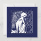 En vacker julhälsningskort i en ovanlig fyrkantig form, med en reproduktion av en knäböjande, jugendängelillustration av den berömda konstnären Aubrey Beardsley. På baksidan finns en mall "Julglädje från [ditt namn] familjen: Skriv bara in eller radera textrutorna där det står "personifiera det". Massor av utrymme för din skrift också. I blått och vitt.