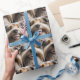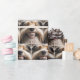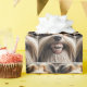 En fluffy Bearded Collie hund med lång päls visar humoristiskt att den mals med människoliknande tänder