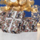 En nyfiken böjd kollieblixt vid burk fylld med färglöst benformad leksak som dekorerats med en provbåge och märkre