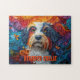 Det här är en abstrakt färglös porträtt av en hund av Bearded Collie-ras i pappra djuphavsberg stil. Det här är ett underbart pussel för hundälskare och Bearded Collie-ägare.