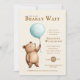 Bearly Wait blue Balloon Baby Shower QR Code Inbjudningar
