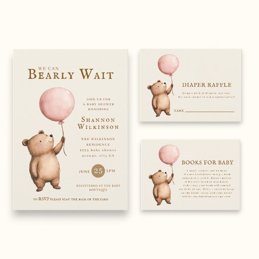 bear pink ballon baby shower Designad av Janine Cooper