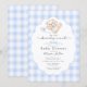 Celebrate the upcoming arrival with this adorable “We Can Bearly Wait” baby shower invitation. This sweet design features a charming watercolor teddy bear with a blue bow and pacifier, set against a soft blue gingham background with an elegant scalloped frame. Perfect for a baby boy shower, teddy bear themed baby shower, or classic nursery celebration, this invitation has a cozy, timeless feel. Easily personalize the details to create a memorable invitation that will delight your guests and set the tone for a joyful baby shower.