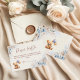 This sweet diaper raffle card was designed to make baby shower games feel extra fun and charming. Featuring a lovable teddy bear and soft blue details, it invites guests to bring diapers for a chance to win a prize while celebrating the joyful wait for a little one.