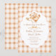 Celebrate the upcoming arrival with this adorable “We Can Bearly Wait” baby shower invitation. This charming design features a sweet watercolor teddy bear with a soft bow and pacifier, set against a warm neutral gingham background and framed with an elegant scalloped border. The cozy farmhouse-inspired style makes it perfect for a teddy bear theme baby shower, gender neutral baby shower, rustic baby shower, or classic nursery celebration. Easily personalize the text with your event details to create a beautiful invitation that friends and family will love.