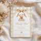 Light, airy, and beautifully minimal, this we can bearly wait baby shower invitation features a sweet teddy bear with a ribbon bow detail against a soft beige and cream background. Perfect for a gender-neutral teddy bear baby shower with an elegant, neutral aesthetic, this invitation is a sophisticated and charming choice for any "we can bearly wait" themed celebration.