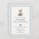 Featuring a charming watercolor teddy bear, soft blue gingham border, and elegant typography, this design is perfect for a timeless and preppy first birthday celebration.