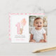 Björn Första Nallebjörn håller rosa ballonger 1:a flicka Födelsedagsfest tack-kort.