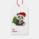Den här berömvärda julklappens märkre har en söt tecknad-panda som är klädd i en röd julhatt och som halkar på ett rött och vitt, randigt candy cane. Under bilden visas det röda anpassadet Beary God jul. Bilden och texten placeras på en vit bakgrund. Baksidan av märkrn har en annan bild av samma björn, med en grönt helgdag träd bakom sig. Du kan fylla i anpassningsbar fält för Till- och Från-information, om du vill, eller lämna den tom för skriva för hand. Särskilt tilltalande för barn! *Tack vare Real Deal Clipart för det klipp som används för att skapa den här märkrn. http://realdealclipart.com * Den här presenten matchar Panda Bear Candy cane-presentfigurationen i vår butik.