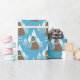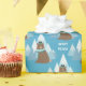 En stor brun björn har på sig vintern och sitter framför blå berg. Den vita texten säger "Beary Merry". Bilden och texten placeras på en mörkare isblå bakgrund.