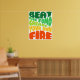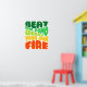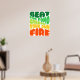 Poster design, inspirerande slogan. "Beat formen, skapa din egen eld." Typografi i grönt, gult och rött.