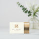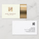 Det här affärskortet innehåller en elegant guld-dammbakgrund på kortets höger. Monogrammet brev visas i ett elegant-skriptteckensnitt över en enkel guld-bakgrund med kvadratiska bokstäver. Ditt namn och din titel ljuger under monogrammet brev, över en svartvit färgad bakgrund. Perfekt för mode, skönhet, dam, kvinnor, konst, konstnärliga och kosmetiska teman.