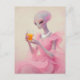 Beautiful Alien Lady in Pink With Orange Juice Vykort