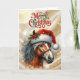 Beautiful Bay Horse in Santa Hat Christmas Card, personalize the text to anything you want when you order