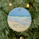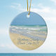 Beautiful beach ornament with gorgeous seaside photography featuring a pretty sandpiper standing at the edge of the ocean waves on a sunny summer day. Lovely blue green water waves roll onto the sandy shore where your name is personalized in cute teal typography. A beautiful Christmas gift for a daughter, mom, grandmother, or granddaughter.