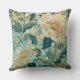 Beautiful Blooming Flowers with Green Gold Pattern Throw Pillow