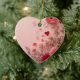 Flowers is on the front and more flowers are on the back of a heart-shaped ceramic Valentine tree ornament.