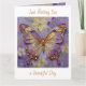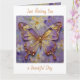 A pretty card wishing a friend or family member a good day with a front illustration of a beautiful gold and purple butterfly surrounded by white and purple flowers. It's done with an impasto style and just emanates beauty and grace.