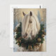 AI generated art of gorgeous palomino horse with wreath in the winter forest snow festive Christmas themed art