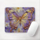 A mousepad with an illustration of a beautiful gold and purple butterfly surrounded by white and purple flowers. It's done with an impasto style and just emanates beauty and grace.