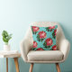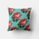 Elegant,färgstark vintage blommigt utformning,röd rosa kål ro med grönt löv på vattenblå tealbakgrund.
