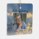 Honor your loved one with this beautiful double-sided ornament featuring a photo highlighted by your custom text and background of a peaceful dramatic sunset sky filled with billowy white clouds and sun rays. Such a meaningful keepsake memory favor to hand out to family and friends or give as a special gift.