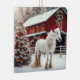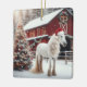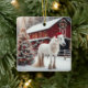 Beautiful White Horses, Christmas Tree and Red Rustic Barn Ceramic Ornament