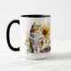 BEAUTIFULLT VATTENFÄRG TABBY KATT MED SUNFLÖDEN MUGG