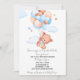 Personalize this beary loved baby shower invitation. Showing a baby bear floating in the air with cute balloons.
