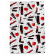 En roligt mönster av skönhetsprodukter och smink.