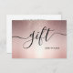Modern elegant enkelt presentkort för skönhetsalongen ro guld glitter. Svart skripttypografi för chic och trendig. Anpassa med namn och affärsinformation. Vackert och tidlöst designalternativ för frisyr, hårsalon, skönhetssalon, nagelsalon, makeup artists eller health och hälsa professionell.