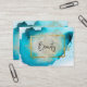 Energetiskt förstärkt ord BEAUTY-typografi (är en bild) som är en härlig feminin DRAMATISK TURQUOISE AQUA BLUE med GULD GLITTER RAM och PEARL och SILVER GLOW GLITTER Trendig Snyggt Modern Elegant Söt Girly Affärskort med Social mediautrymme.