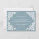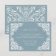 Designad för att samordna med vår Beaux Arts bröllopssamling, har detta eleganta mottagningskort en papel picado-stil vit kant som ramar in er mottagningsdetaljer, tid och adress på en dammig turmalinblå bakgrund.