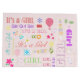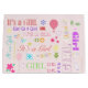 En vacker sammansättning av olika färgstarka typsnitt och små inslag för att välkomna en nyfödd bebis-flicka.