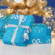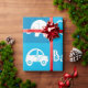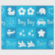 Pojke-annonsering i blått och vitt på fyrkantig bakgrund