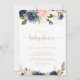Den här marinens blommigt-babyduschinbjudan är perfekt för en strålande babydusch. Utformningen har vackra, handmålade mörk blått, blå, marinerade, rosa, , guld-blommor och grönt bladverk.