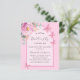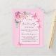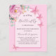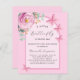 En rosa bakgrund med en båge. Dekorerad med en rosa blommigt, ro blomma, grönt vattenfärgad eukalyptus greenery och butterflies. Anpassa och lägg till namn i mamma för närmare uppgifter och party. En liten fjäril är på väg. 1 lakan = 1 inbjudan tryckt kant till kant.