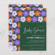 Budgetera Mönster för returblomma i i Lila- och Grönt-inbjudan för babyskor