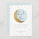 Ett söt, en babydusch tack för ditt kort med guld star ram och måne med mjuk pastellskugga på vit bakgrund.